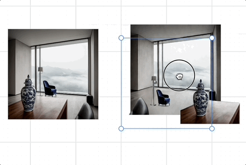 Using canvas allows us to obtain additional positional information about images, which is often difficult to describe with language. For example, we can drag a teacup to any position on a desktop and composite an image.