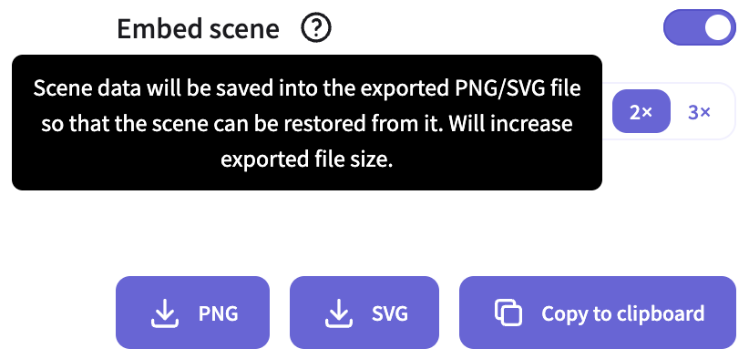除了图形信息,还可以将场景信息也嵌入到导出产物中,下图来自 Excalidraw